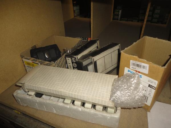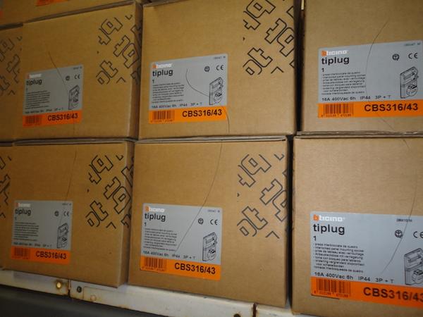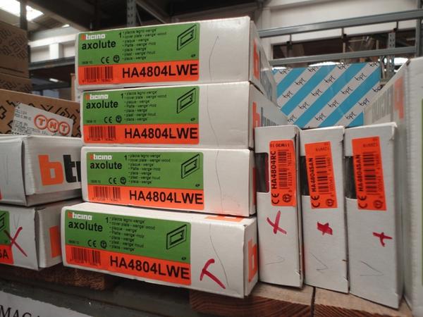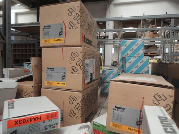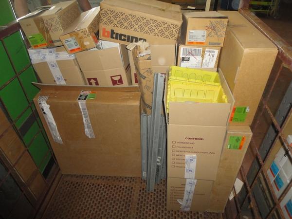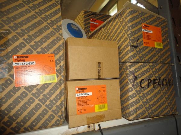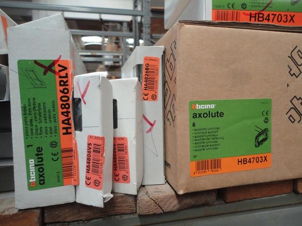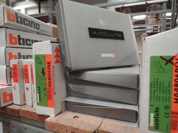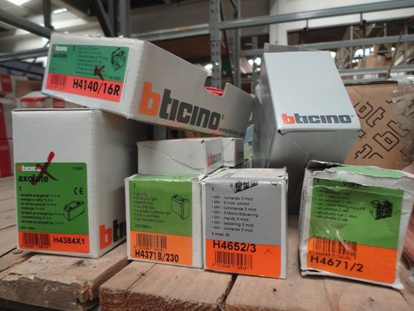 Lot composed by BTicino electrical equipment such as lamps, door phone supports, wall boxes and much more.