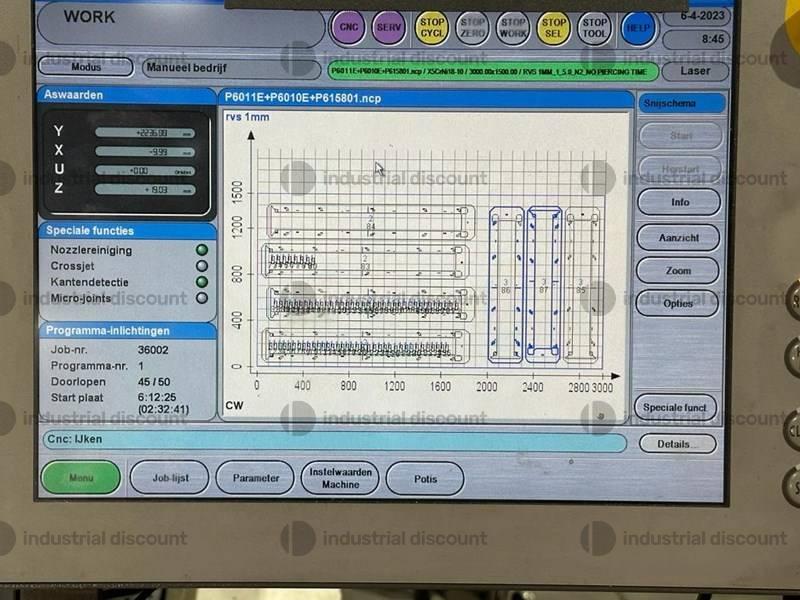SALE FROM AN ACTIVE COMPANYMazak Super Turbo x 510 MKII laser cutter 2 5 kW System in operation until December 2025 System complete with MAZAK automated loading unloading cell Complete overhaul lead screw and slides of the X axis performed in 2024 Regular MAZAK maintenance performed in October 2025 Cell and machine were decommissioned by MAZAK with the axes and optics locked for transport Transformer and refrigerator are included no exhaust fan Serial number 677159608 Approximately 80 000 hours 1500x3000