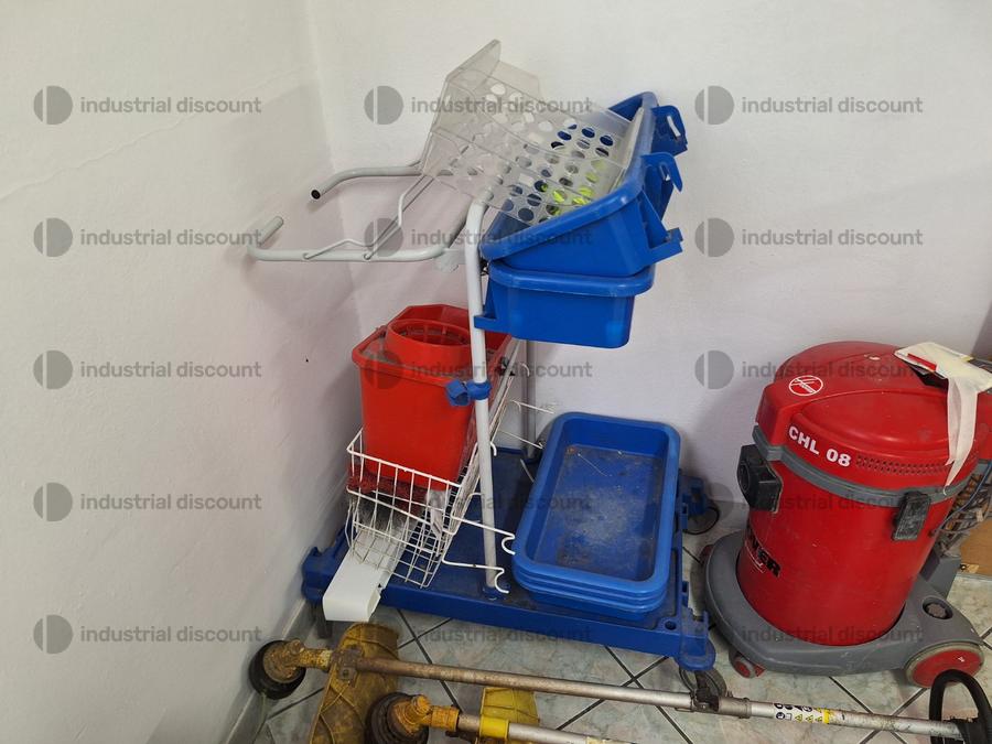 Lot consisting of cleaning equipment such as floor cleaners, liquid vacuum cleaners, and much more.