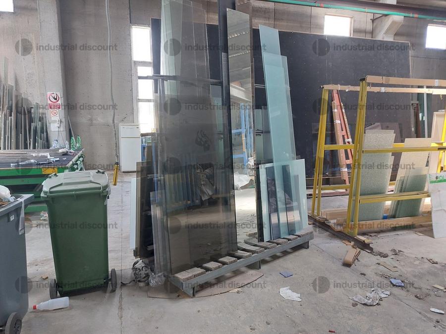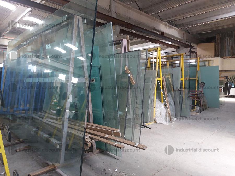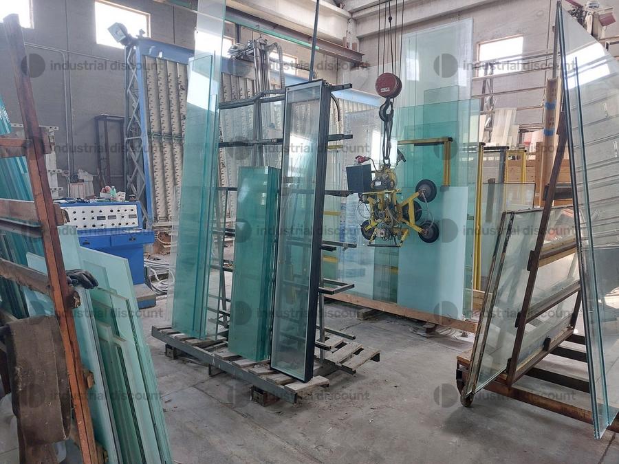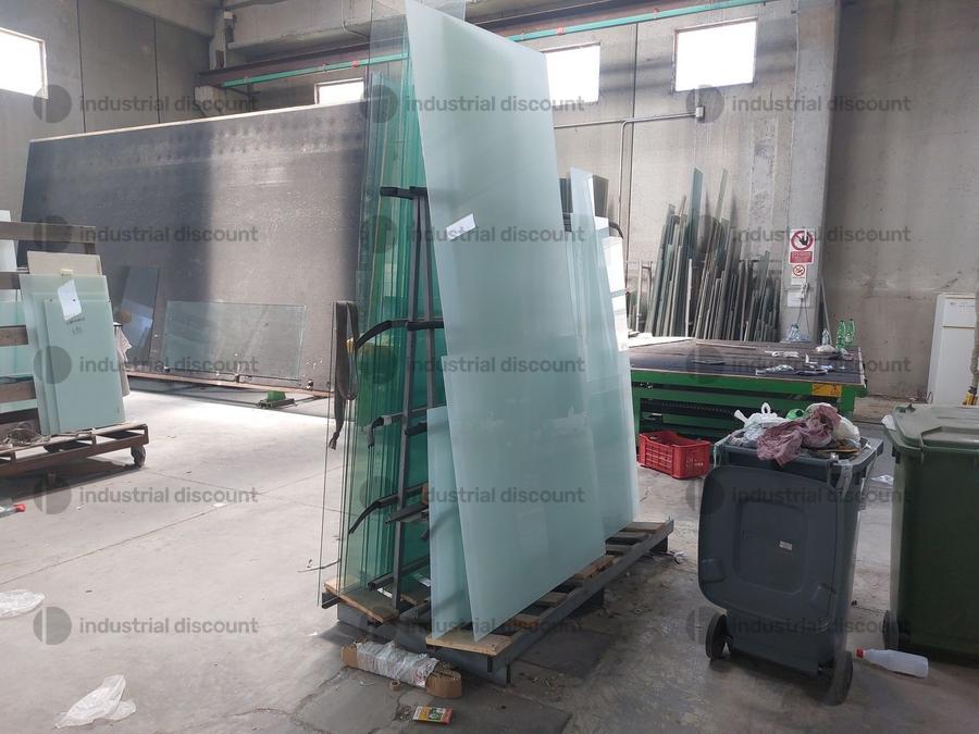25 trestles with sheets of armored glass, double glazing, and tempered glass, various sizes and types.