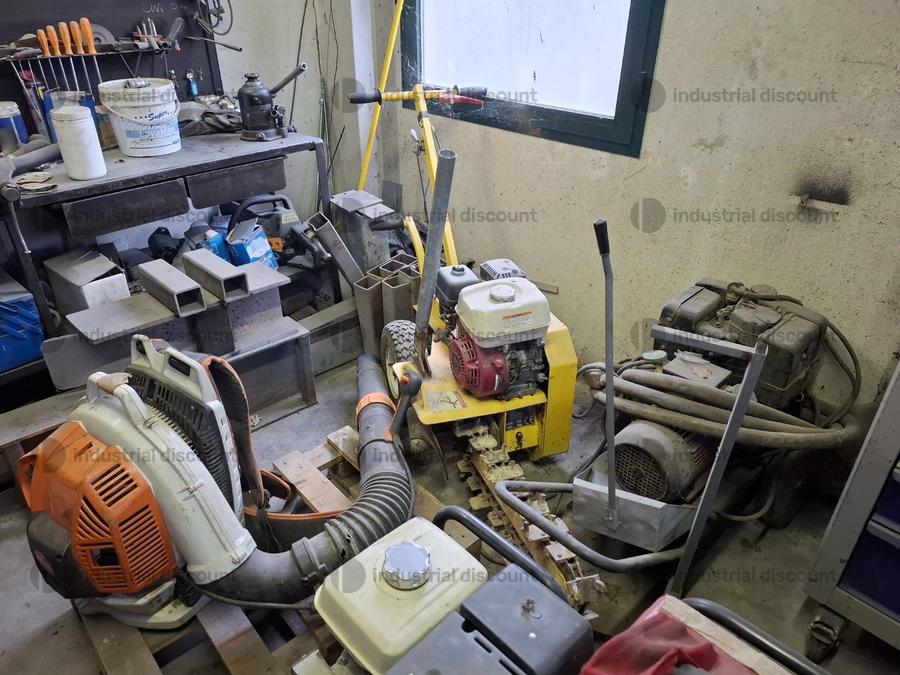 Lot consisting of various equipment such as a motor pump, compressor, single-phase fan, and more.