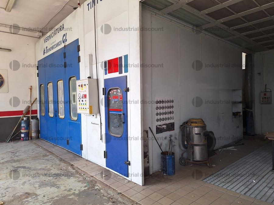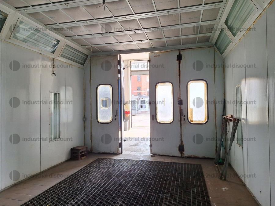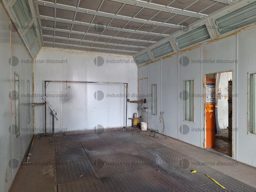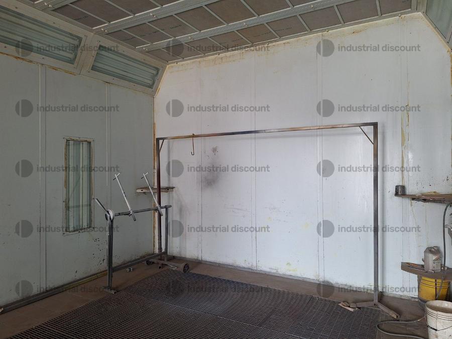 Gas-fired paint oven, equipped with a preparation area and a paint box, intended as scrap for disposal.