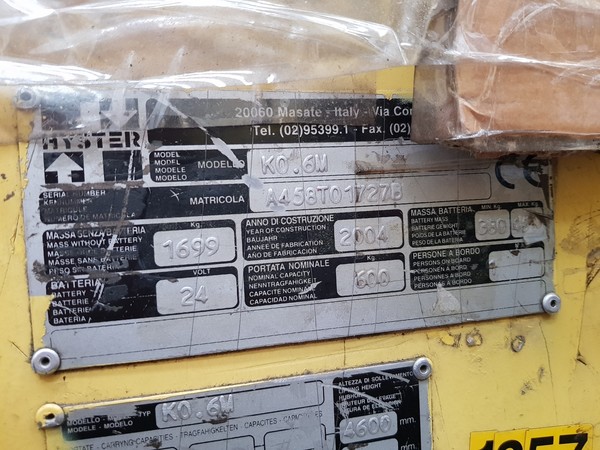 Hyster forklift model P2 0S FWB electric serial number D439T08225T year 2019 without battery chargerCOLLECTION NOTES maximum time for collection activities to take place from the agreed day half day