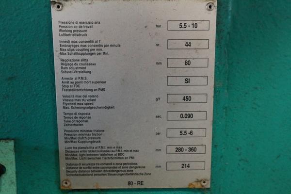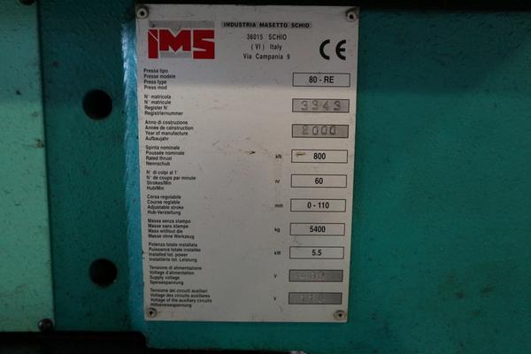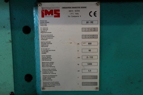 IMS press, 80 tonne, model 80-RE, serial number 3343, year 2000.