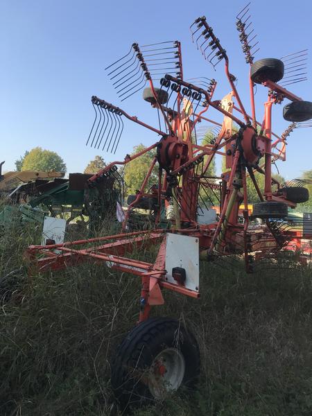 Rake Kuhn GA 7301 double impeller, tandem axle, working width 7.30 mt with hydraulic closure, mechanical widening, width 2.50 mt road, cardan, year 2003