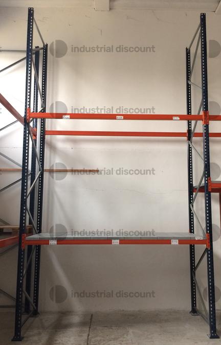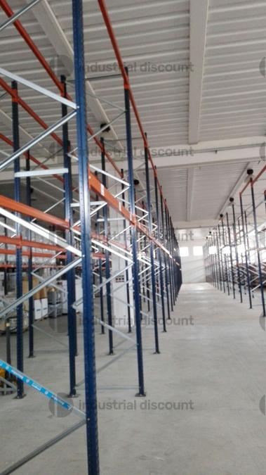 Pallet racking, capacity per bay: 9 pallets, 120x80x220h, maximum load per pallet: 1,000 kg, maximum load per level: 3,000 kg, load from ground to first level: 2,400 kg, number of levels including the ground: 3.