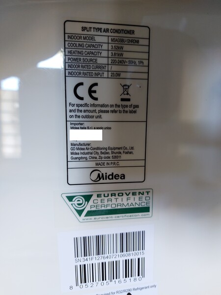 -N° 15 new and packaged Split indoor units, Midea brand, model MSAGSBU-12HRDN8.
