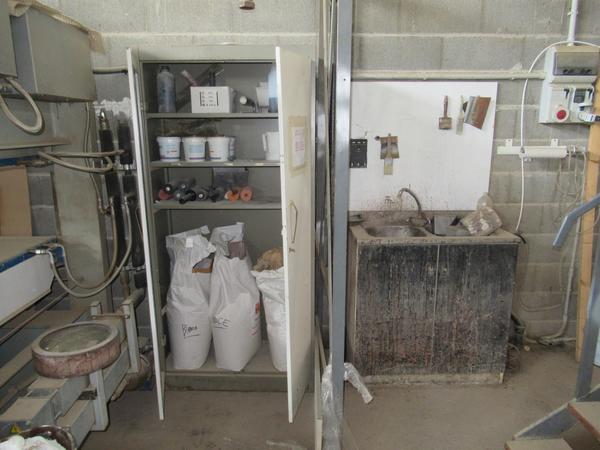 N ° 2 cabinets with 2 doors and workbench, N ° 1 Omc Machinery press mod. PL90