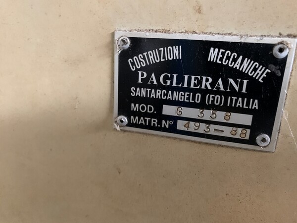 - Paglierani dosing and packaging unit model G 358 serial number 493-88;