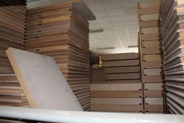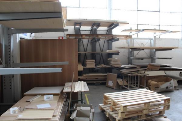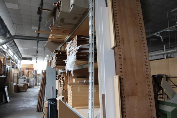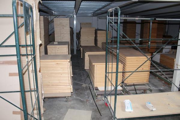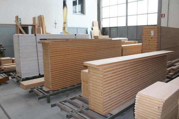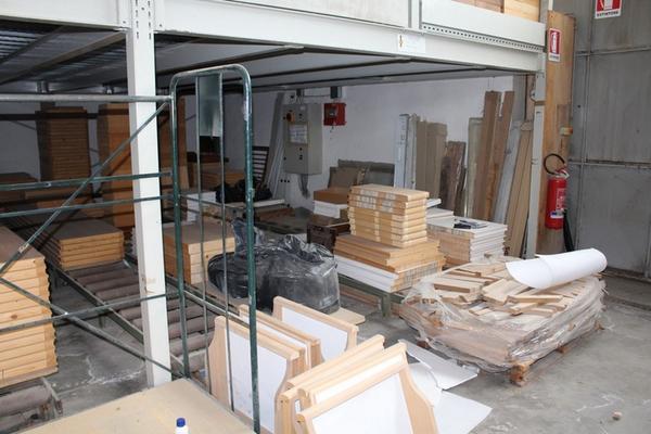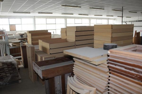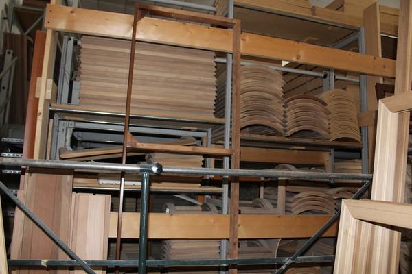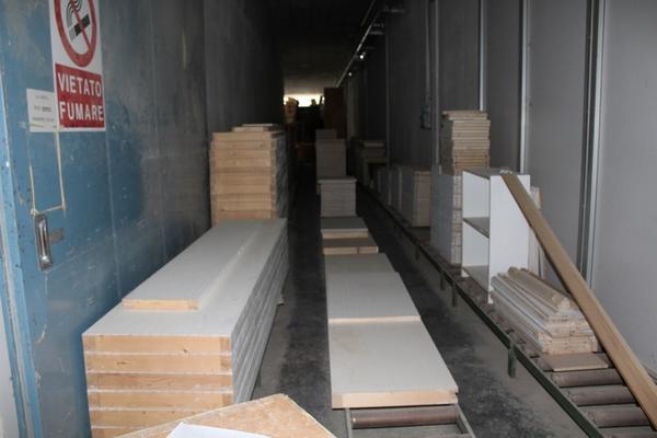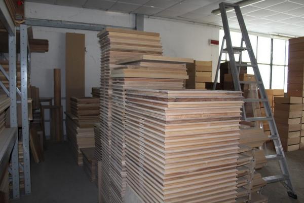Lotto composto da serie di componenti prelavorati per la produzione tra cui ripiani, regoli, telai, ante ecc…).