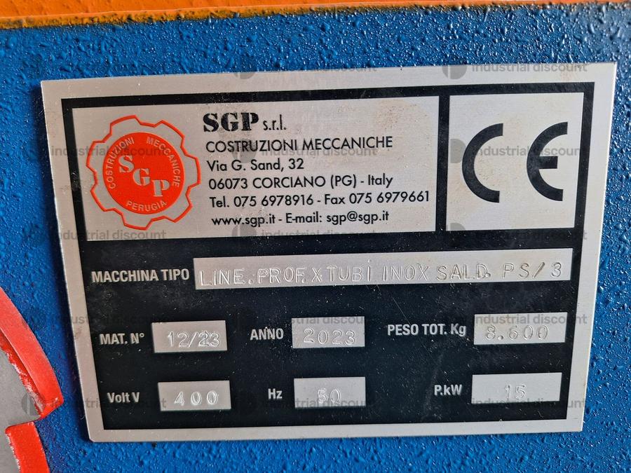 SGP brand industrial profiling line year 2023 for stainless steel pipes diam 100 mm s 0 5 0 6 mm with K110 roller conveyor including rewinder NOTES FOR COLLECTION maximum time required for carrying out the collection activities from the agreed day 2 days