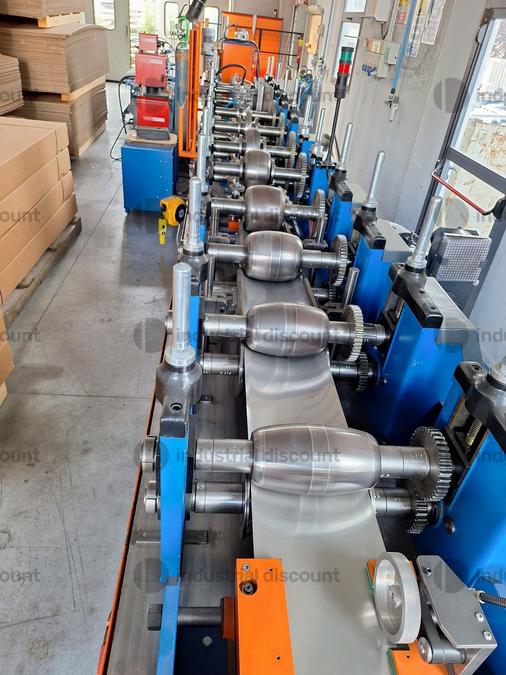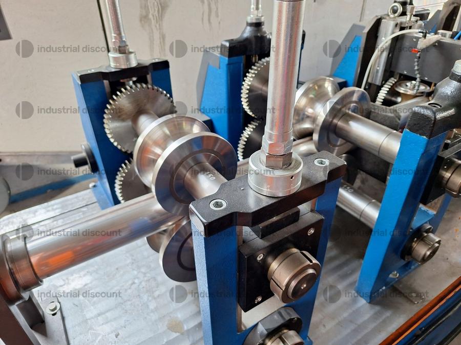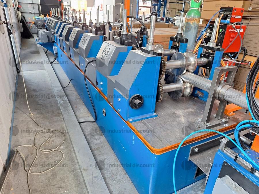 SGP brand industrial profiling line, year 2023, for stainless steel pipes diam. 100 mm., s= 0.5-0.6 mm., with K110 roller conveyor including rewinder.