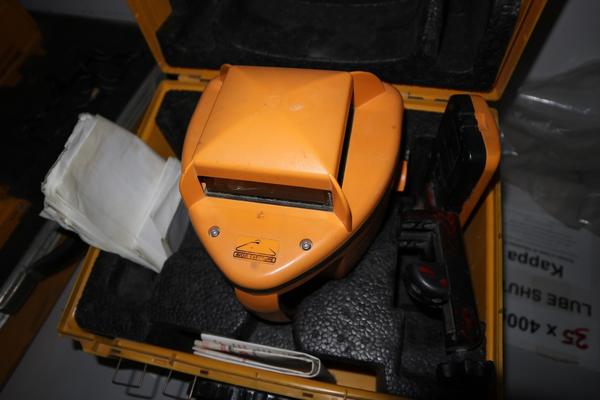 Spectra Laserplane L600. Manual precision laser level with 600m diameter flow; digital laserometer receiver, tripod, rechargeable battery, carrying case. Production year 1997. Last certificate of conformity: 2012. Conservation status: discrete