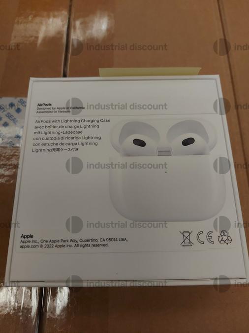 Lot consisting of approximately 900 Apple Air Pods 3rd Gen White Goods sold individually not individually SALES NOTES The award is provisional and subject to acceptance by the Procedure Authorities The successful bidder of one or more goods must send the documents indicated in the Specific Conditions of Sale and Collection to postvendita industrialdiscount com no later than 48 hours after the auction closes The successful bidder may be responsible for additional costs related to loading the goods which must be defined and agreed upon directly with the warehouse manager Please note that the goods for sale are currently under judicial seal and therefore cannot be opened or inspected The sale is taking place in their current state as is with no guarantee regarding actual quantities or quality Bidders are required to refer exclusively to the photographs descriptions and lists attached if any to the tender documentation COLLECTION NOTES Maximum expected collection time from the agreed date 1 day We recommend using the following vehicles for collection Pallet truck and van with tailgate