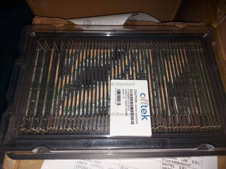 Lot consisting of approximately 700 pieces of RAM 300 OFFTEK FTG32MKR3PLV 50 FT54MKR72V3XLR model 200 FT32MKR3PLR model 50 FTG32MKR3PLVNLP model 100 CISCO 100g SM SR Goods sold individually not individually SALES NOTES The award is provisional and subject to acceptance by the Procedure Authorities The successful bidder for one or more goods at the end of the auction must send the documents indicated in the Specific Conditions of Sale and Collection to postvendita industrialdiscount com no later than 48 hours after the auction closes The successful tenderer may be responsible for additional charges relating to the loading of the goods which must be defined and agreed directly with the warehouse manager Please note that the goods for sale are currently under judicial seal and therefore cannot be opened or inspected The sale is taking place in their current state as is with no guarantee regarding actual quantities or quality Bidders are required to refer exclusively to the photographs descriptions and lists attached if any to the tender documentation COLLECTION NOTES Maximum expected time for collection Collection activities from the agreed upon date 1 day We recommend using the following vehicles for collection Pallet truck and van with tailgate