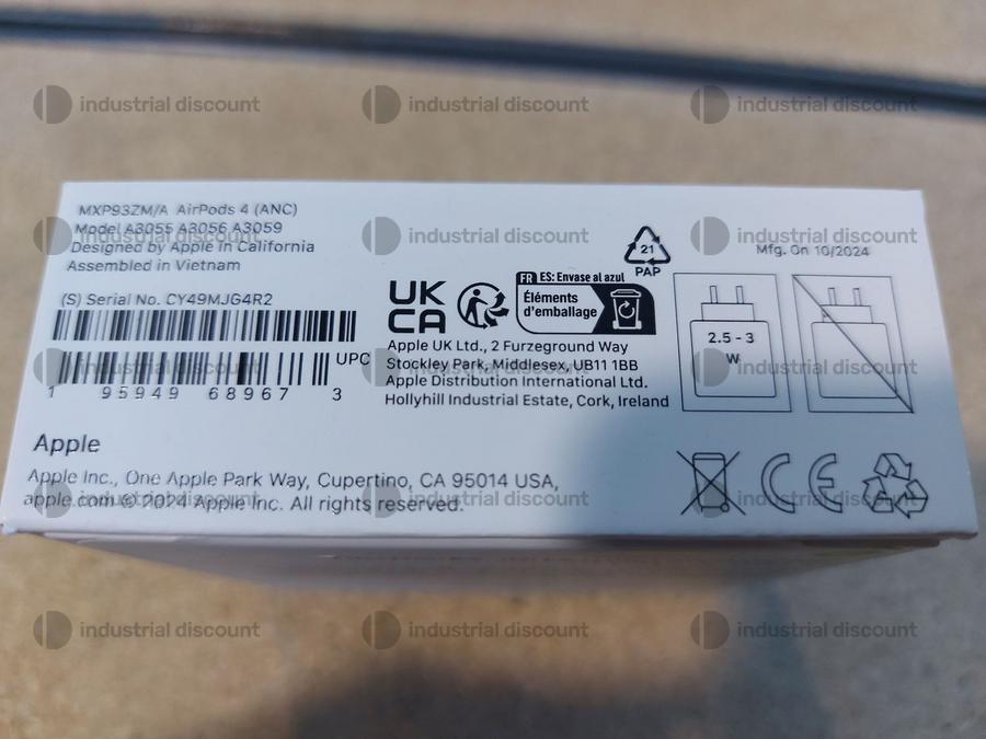 Lot consisting of approximately 510 Apple AirPods Pro Goods sold individually not individually SALES NOTES The pallet is located underneath the pallet in lot 4 The award is provisional and subject to acceptance by the Procedure Authorities The successful bidder for one or more goods at the end of the auction must send the documents indicated in the Specific Conditions of Sale and Collection to postvendita industrialdiscount com no later than 48 hours after the auction closes The successful tenderer may be responsible for additional charges relating to the loading of the goods which must be defined and agreed directly with the warehouse manager Please note that the goods for sale are currently under judicial seal and therefore cannot be opened or inspected The sale is taking place in their current state as is with no guarantee regarding actual quantities or quality Bidders are required to refer exclusively to the photographs descriptions and lists attached if any to the tender documentation COLLECTION NOTES Maximum expected collection time from the agreed date 1 day We recommend using the following vehicles for collection Pallet truck and van with tailgate