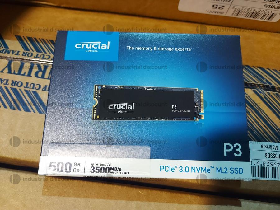 Lot consisting of approximately 300 Crucial P3 500GB PCIe 3 0 NVMe M 2 SSD internal SSDs 3 boxes Goods sold individually not individually SALES NOTES The award is provisional and subject to acceptance by the Procedure Authorities The successful bidder for one or more items at the end of the auction must send the documents indicated in the Specific Conditions of Sale and Collection to postvendita industrialdiscount com no later than 48 hours after the auction closes The successful tenderer may be responsible for additional charges relating to the loading of the goods which must be defined and agreed directly with the warehouse manager Please note that the goods for sale are currently under judicial seal and therefore cannot be opened or inspected The sale is taking place in their current state as is with no guarantee regarding actual quantities or quality Bidders are required to refer exclusively to the photographs descriptions and lists attached if any to the tender documentation COLLECTION NOTES Maximum expected collection time from the agreed date 1 day We recommend using the following vehicles for collection Pallet truck and van with tailgate