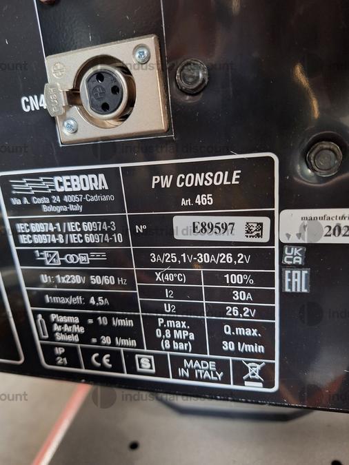 Cebora brand welding machine, mod. Win Tig Dc 350T, year 2022 with Pw Console and Wf5 Cold Wire.